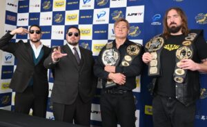 【3.15後楽園記者会見】世界タッグ選手権試合 <王者組>綾部蓮&タロース vs斉藤ジュン&斉藤レイ<挑戦者組>