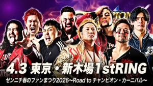 - ニュース 【4.3新木場一部カード】「ゼンニチ春のファンまつり2026〜Road to チャンピオン・カーニバル〜」4月3日(金)新木場大会一部対戦カード決定のお知らせ