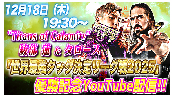 【12/18(木)19:30開始】綾部蓮選手&タロース選手が登場!「世界最強タッグ決定リーグ戦2025」優勝記念YouTube配信決定!