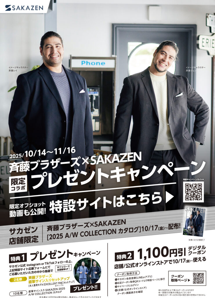 【豪華プレゼントが当たるキャンペーン実施中】斉藤ブラザーズが大きいサイズのサカゼン「2025 A/W COLLECTION カタログ」に登場!