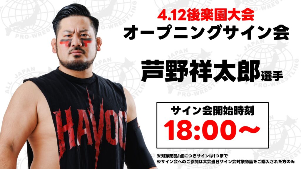 【FC撮影会&サイン会情報】「チャンピオン・カーニバル2026」【開幕戦】4.12後楽園大会ファンクラブ会員限定撮影会&サイン会情報! 全日本プロレス
