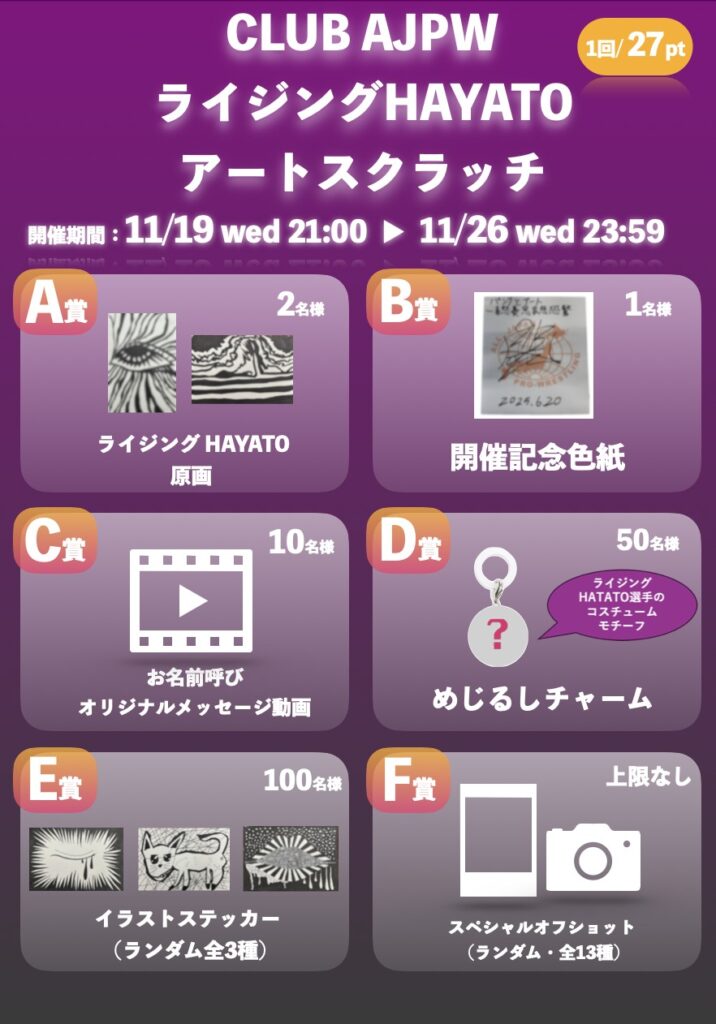 【公式ファンクラブ「CLUB AJPW」】本日21時より『ライジングHAYATOアートスクラッチ』を開催!