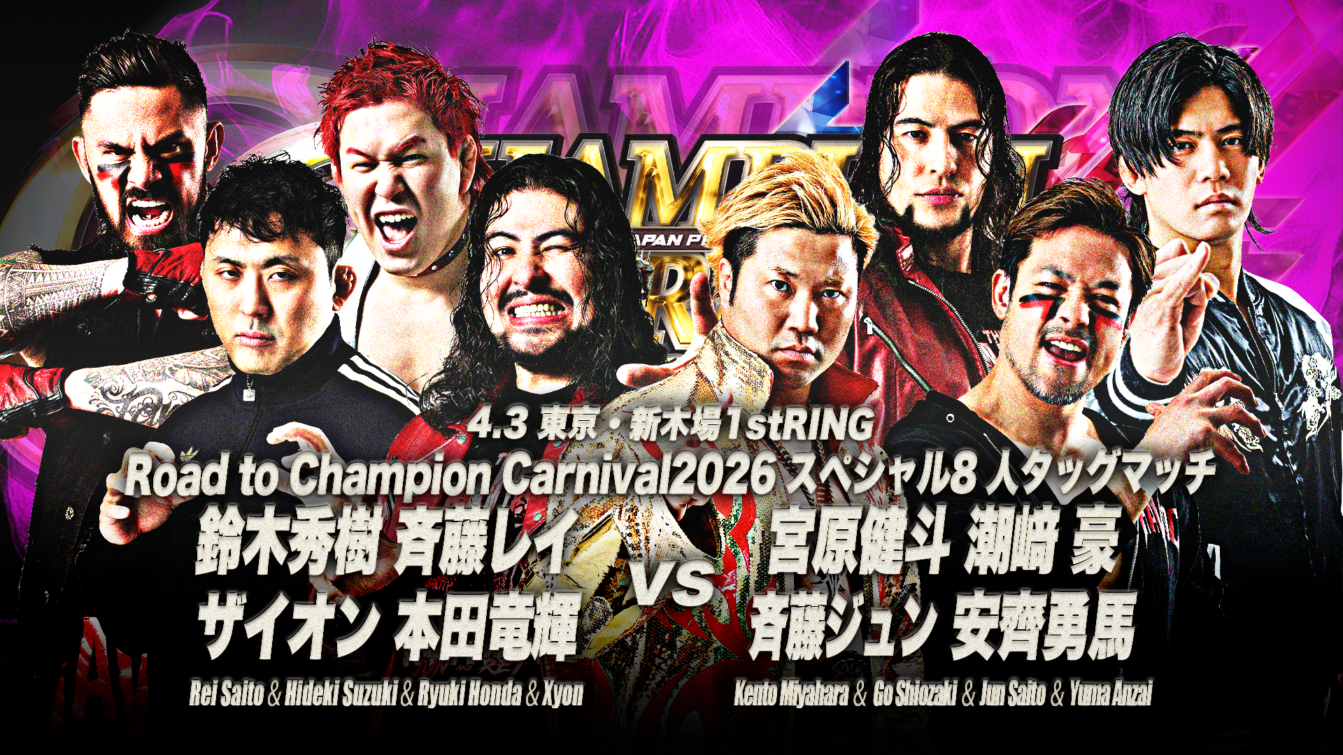 【4.3新木場一部カード】「ゼンニチ春のファンまつり2026〜Road to チャンピオン・カーニバル〜」4月3日(金)新木場大会一部対戦カード決定のお知らせ