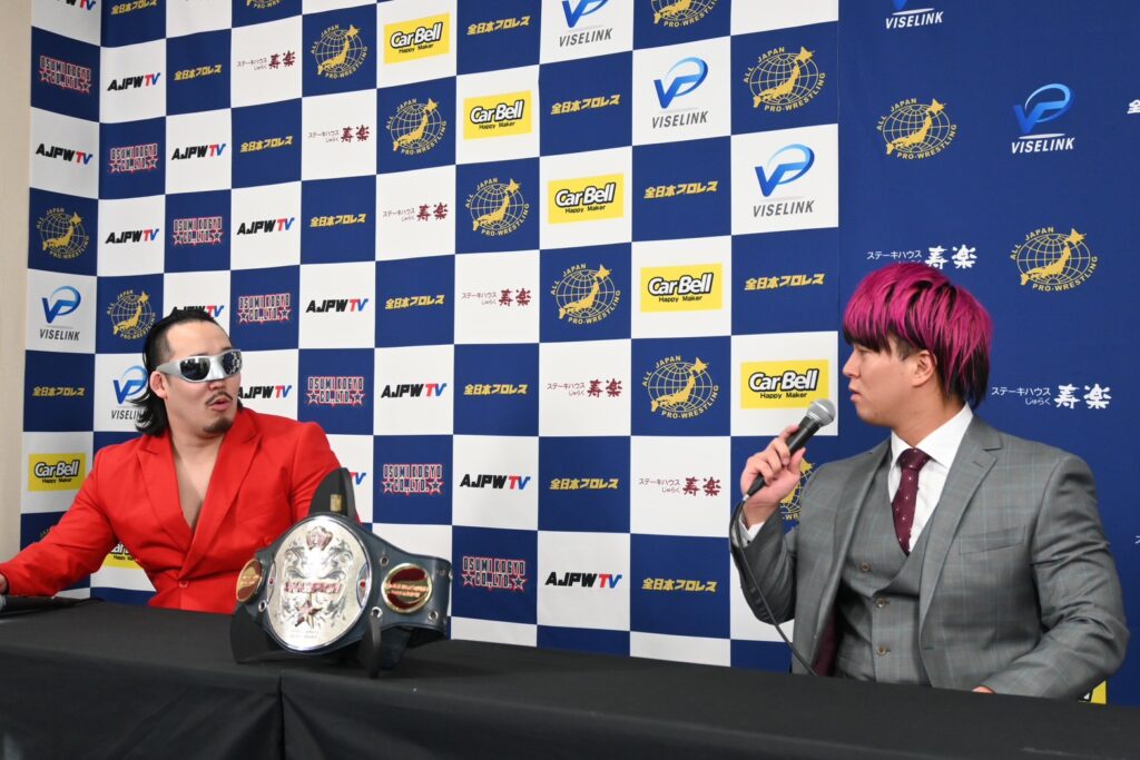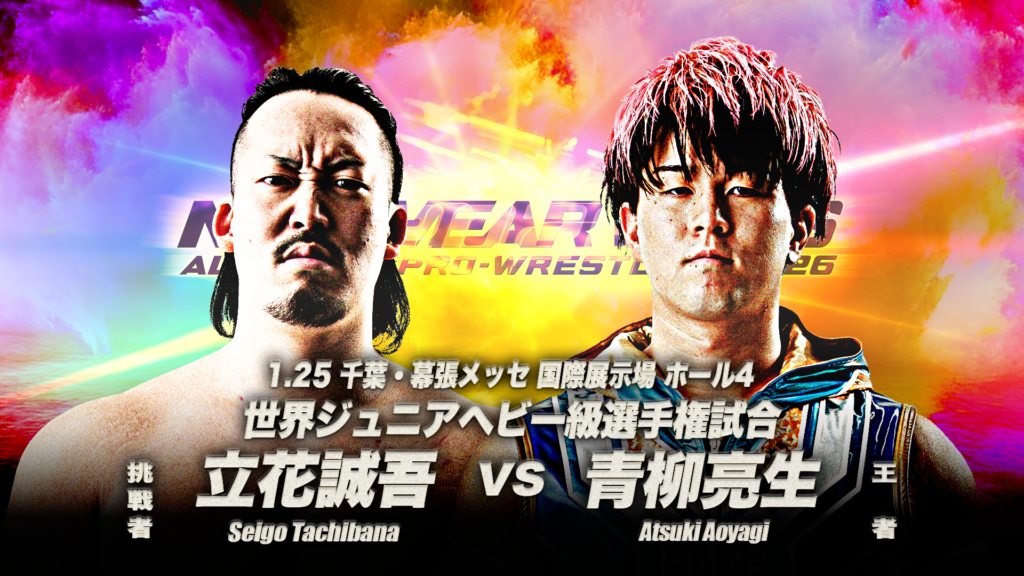 1月16日、全日本プロレス湯島事務所で、2026年初のビッグマッチとなる1.25幕張大会に向け、世界ジュニアヘビー級選手権試合の記者会見が行われ、第72代王者・青柳亮生、挑戦者・立花誠吾が登壇。全日本プロレス2026年初のビッグマッチで行われるタイトルマッチに向け、意気込みを語った。