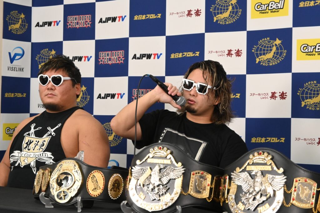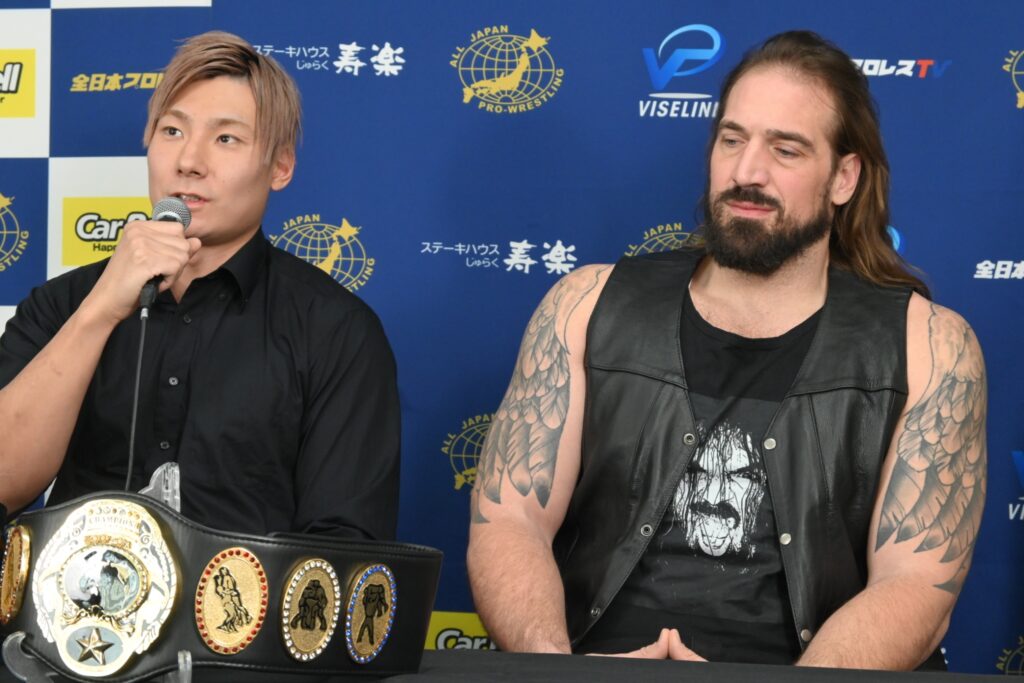 2月1日(日)「エキサイトシリーズ2026」沖縄大会で行われる世界タッグ選手権試合に向け、全日本プロレス事務所で記者会見が行われた。