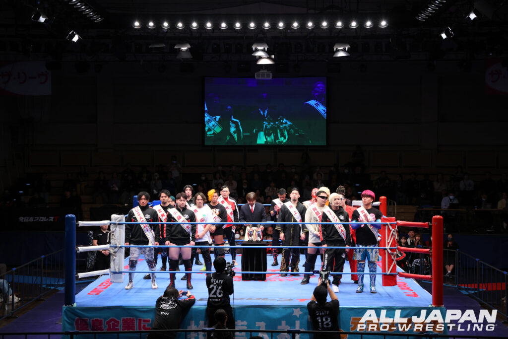 休憩時間明け、場内ビジョンで「チャンピオン・カーニバル2026」出場者を発表。前年優勝者・斉藤レイ、三冠ヘビー級チャンピオン・宮原健斗、潮﨑豪、鈴木秀樹、斉藤ジュン、本田竜輝、綾部蓮、安齊勇馬、真霜拳號、関本大介、羆嵐、菊田円、ザイオン、オデッセイ、サイラス、タロース、DRAGONGATEの菊田円がエントリー。16選手が集結し、4・12後楽園大会で開幕、5・17大田区大会で優勝決定戦がおこなわれる。今年も2ブロック制となり、ブロック分けと公式戦の日程は、3.15後楽園大会で明らかになる。