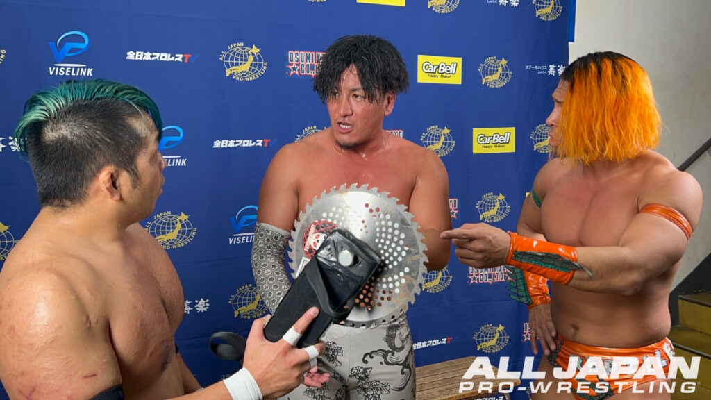 諏訪魔「秀樹、絶好調だね!怒ってんじゃん。この怒りはこれから全日本内に必要だと思うよ。ただただ楽しいプロレスやっているだけじゃ俺はちょっと違うかなって思うよ。あえてまたここで宣言させてもらうけど、俺はEvolutionの魂を大事にしたいと思っているよ。どんどんどんどんボコボコにしていくんで」