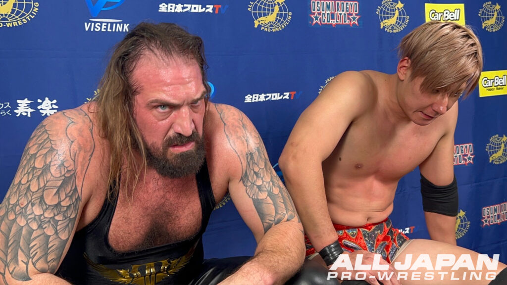 宮原「クソ…、やられちまったな。これか?斉藤ブラザーズの完全復活っていうのは。今日、俺は実力行使で全日本プロレス、会社に2月23日大田区総合体育館の斉藤ブラーズ推しをやめろとリング上で言うつもりが、このザマだ。DOOMか。もういいよ。全日本プロレス、とことん推せや、全日本プロレスは斉藤ブラザーズを。2月23日、とことん推せよ!クソ…、とことん推せよ」