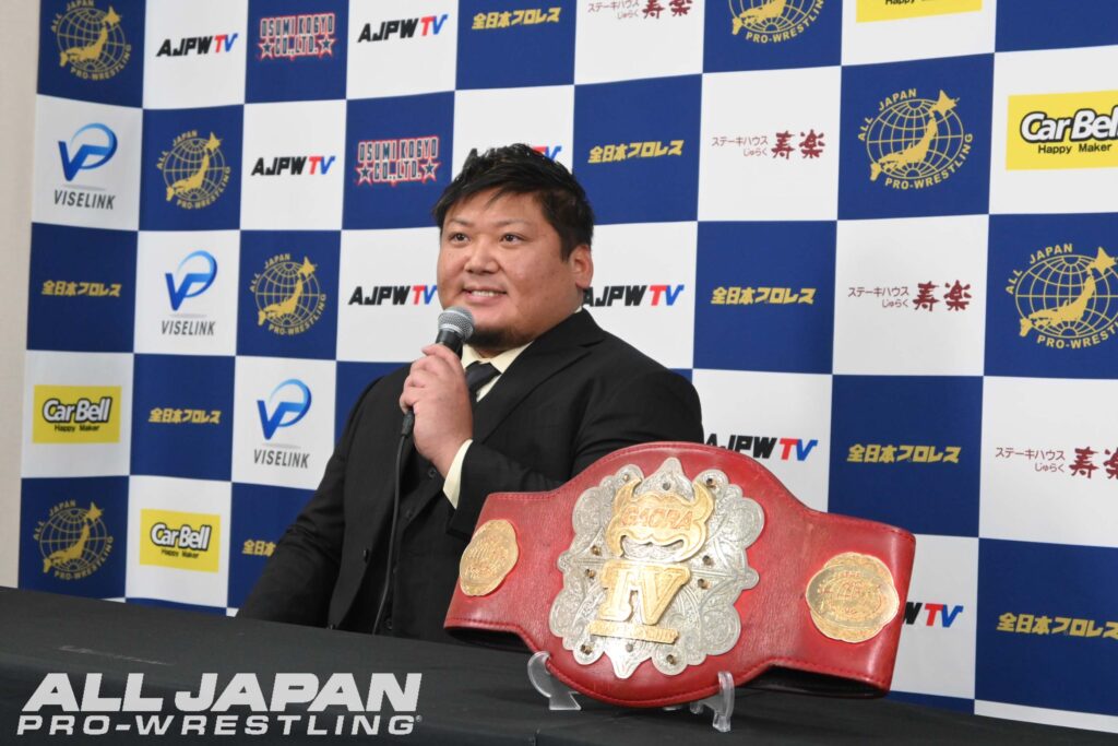 2月23日(月・祝)大田区総合体育館で行われるGAORA TVチャンピオンシップに向け、全日本プロレス事務所で記者会見が行われた。会見には王者・関本大介、挑戦者羆嵐が出席。6日後に迫るタイトルマッチに向け意気込みを語った。