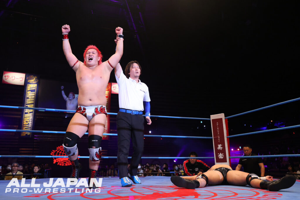 関本との肉弾戦を制した羆嵐は、全日本マットでのシングル王座初戴冠。かつて大日本プロレスのストロングBJ戦線で一時代を築いた関本と岡林裕二のライバル闘争になぞらえて「関本と羆嵐はとんでもない試合をするぞって、俺はそこまで目指してる」と関本との闘いを“ブランド化”することを目標として掲げ、「ここから嵐を巻き起こしてやる」と全日本マットでのさらなる飛躍を誓った。