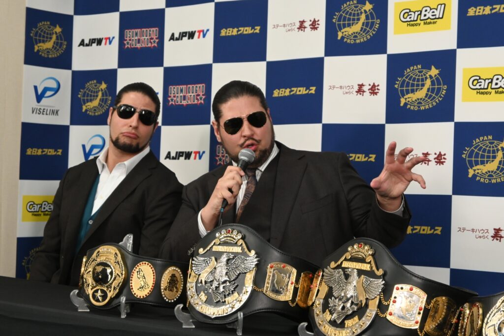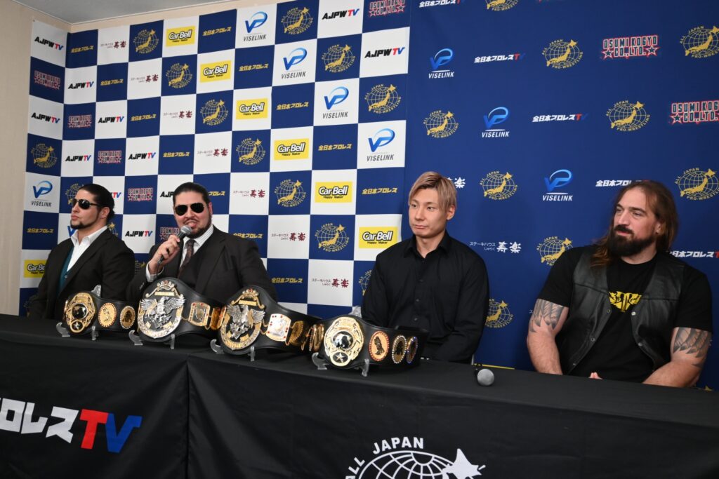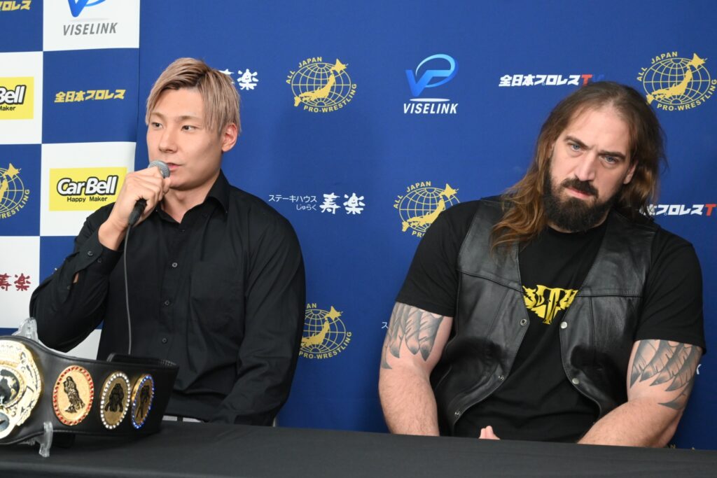 3月15日(日)「ドリームパワーシリーズ2026」後楽園大会で行われる世界タッグ選手権試合に向け、全日本プロレス事務所で記者会見が行われた。