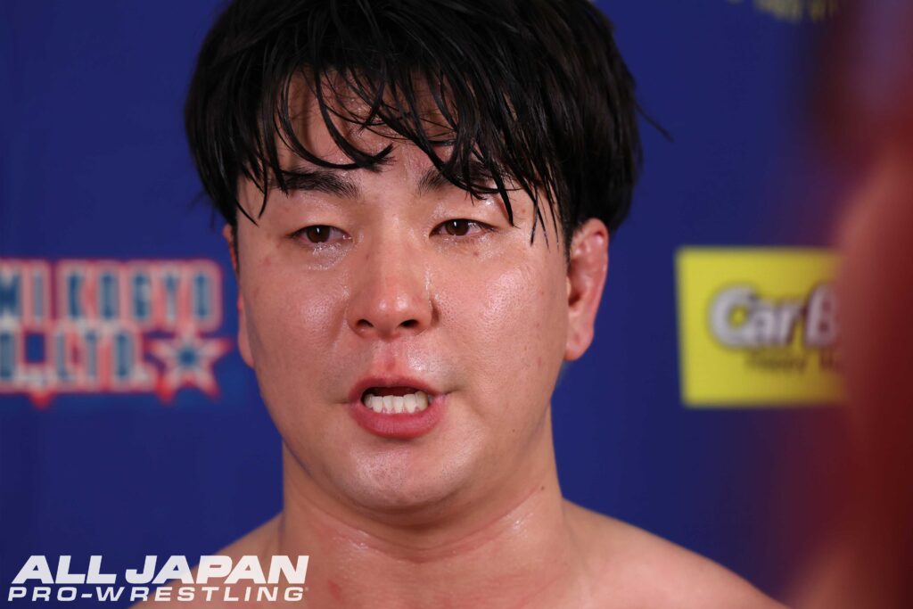 青柳「関係者の皆様、団体の所属選手、応援してくださるファンの皆様、スポンサーの皆様に多大なるご迷惑をおかけしたことをお詫び申し上げます。今日、無事にこうやって試合できたのも、スポンサーの皆様と団体と、僕がいない間も戦い続けてくれた所属選手の皆さん、そして全日本プロレスに参戦してくださったフリーの選手の皆さんのおかげだと凄く痛感しました。ありがとうございました。これからは、本当に私生活はもちろん、プロとしてもしっかりとリング上を充実させたうえで、プライベートをしっかり身を引き締めて生活して、ひとつひとつのことをしっかりと丁寧にこなして、また皆さんからの信頼を得られるようなプロとしての生活を送っていきたいと思います。ありがとうございました。第0試合で僕の相手を務めてくださった鈴木秀樹さんには感謝しかありません。試合とは関係ないんですけど、僕の名前をずっと出し続けてくれた安齊勇馬に感謝したいですし、最強タッグに一緒に出場したのに、僕のせいでこうなってしまったこと、本当に申し訳ないなと思っています」