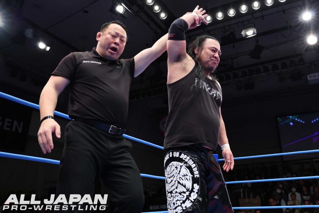 MAZADA「全日本プロレス関係者の皆様、呼んでいただきありがとうございます。なかなか、思うように動けませんでしたが、おかげ様で勝利することはできました。また機会があれば」