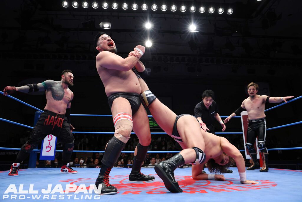 芦野「ザイオンも帰ってきた。ラグビーのアメリカ代表はヤバいよ。そんなのがいるってのは最高にHAVOCが強えぇってことだろ?個人的には、ちょっと試合が空くけど。ただな、めちゃくちゃなことやってやるからな。全日本プロレスで、HAVOCで、チャンピオン・カーニバルでめちゃくちゃなことやってやるよ、テメェ」