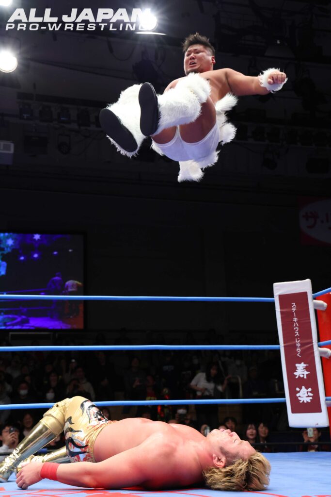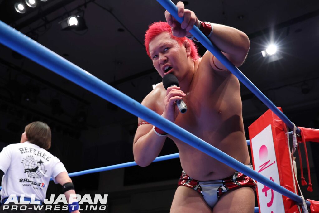 亮生「このあとメインイベントを控えていますので、中締めをしてお別れしたいと思います。みなさんよろしいでしょうか?(大歓声)全日本プロレス、さらに向こうへ!Plus Ultra!」