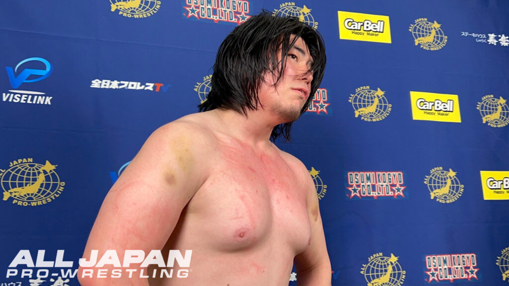 青柳「こうやって僕のことをずっとプロレスラーとして続けてくれる団体に感謝の意味を込めて、年始に着れなかったジャージなので、今日からしばらくはこのジャージを着てやっていこうかなと思っています。『全日本プロレスの一員です』っていうのを、二度と恥させないように頑張っていきたいと思っています」