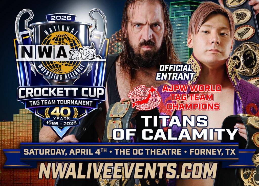 【Titans of CalamityがNWA参戦!】世界タッグ王者・綾部蓮&タロースがテキサス州フォーニー・OCシアターで開催の「NWAクロケットカップ タッグチームトーナメント」にエントリー!