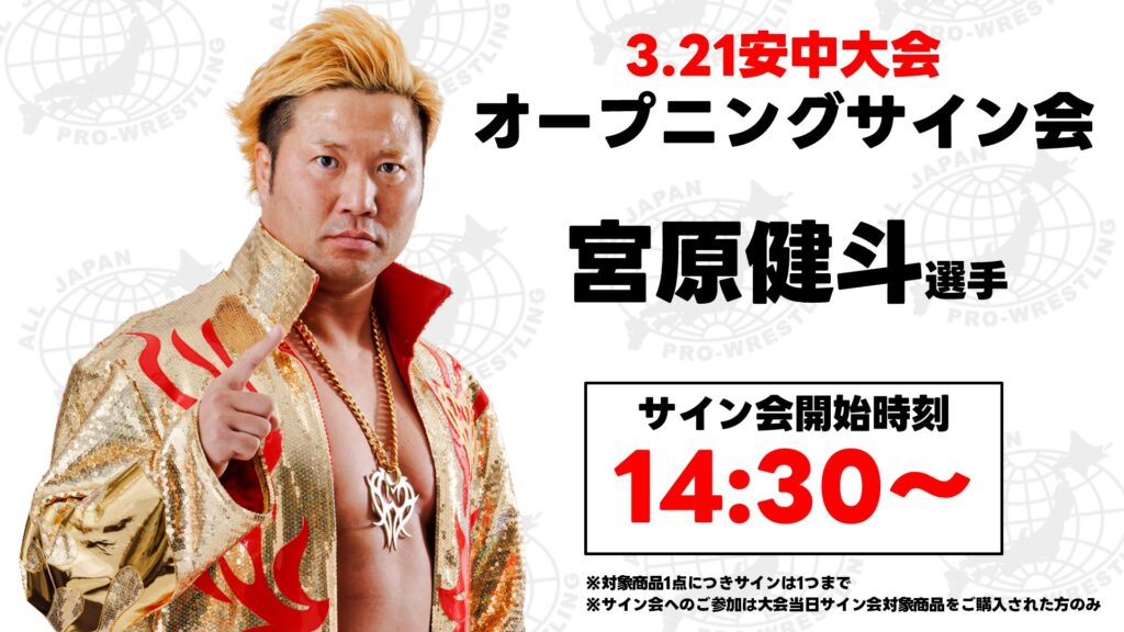 ☆試合前、会場売店にて宮原健斗選手がサイン会を開催!