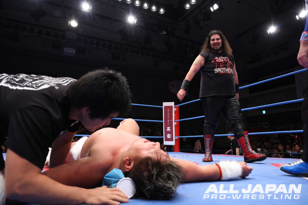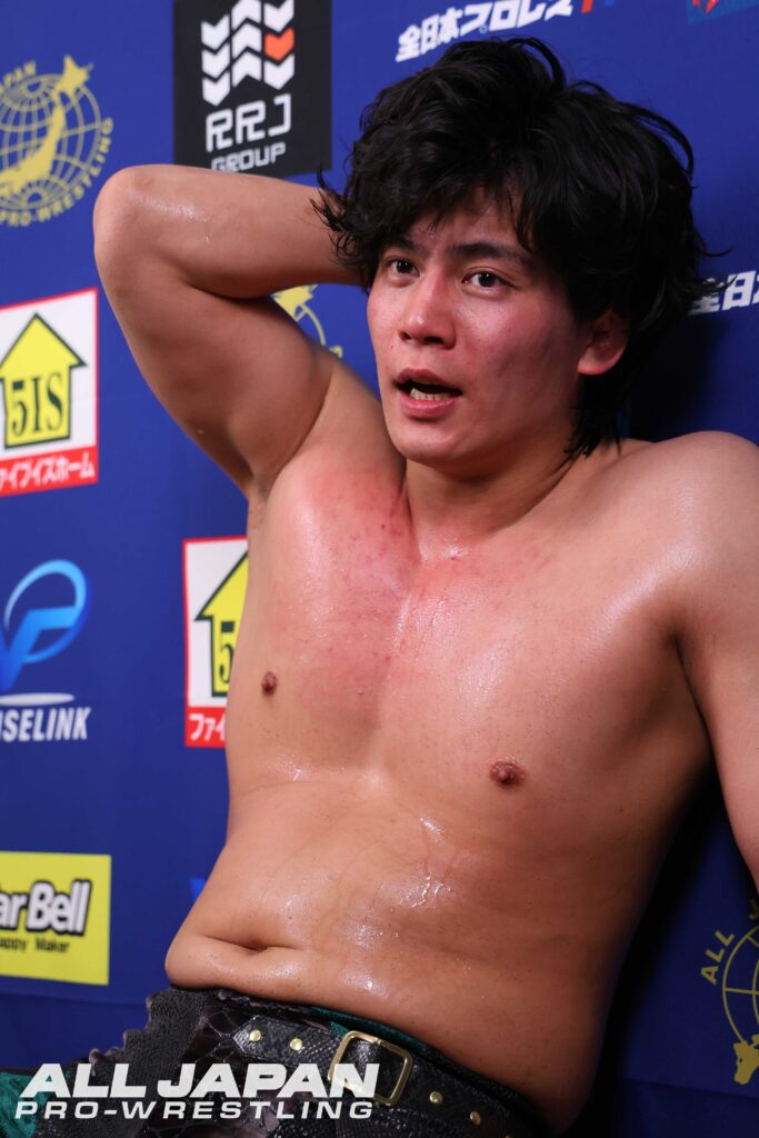 井上「クソ…、チャンカン始まって、全日本プロレスのヘビー級が戦うトーナメントなので、やっぱりどうしてもジュニアヘビー級、大人数の試合が多くなってくるけどさ、俺としてもゼンニチジュニアの一員だからさ、そこは舐められたくない。あと今日いたアツハヤ、このチャンカン中にいっぱい当たるだろ。俺は八王子の恨みもあるからさ、ここで一気に清算しようと思ってますよ。やってやるぞ!」
