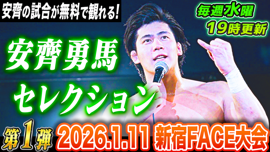 第1弾は「2026.1.11 東京・新宿FACE大会」よりタッグマッチ 宮原健斗&潮﨑豪 vs 安齊勇馬&ライジングHAYATOを配信!