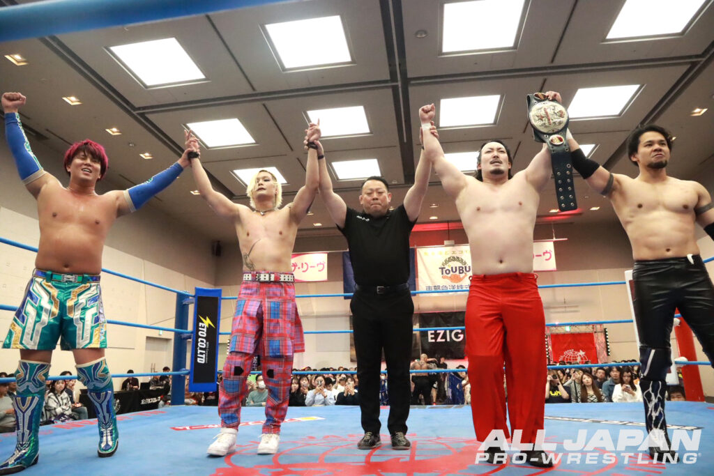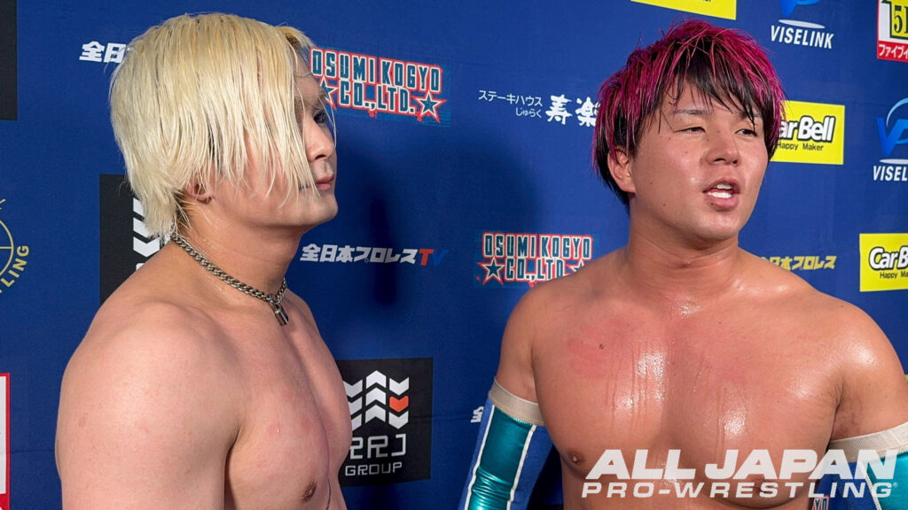 なお、ゼンニチJr.タッグフェスティバルを制覇したアツハヤはアジアタッグ王座挑戦権を獲得しているが、この日のDRAGONGATE福岡大会で第129代王者組、望月成晃&ドン・フジイが堀口元気&神田裕之に敗れて王座陥落。亮生は2度目のドラゲーマットでの王座移動に戸惑いつつも、「俺たちはいつでも行けるぞ!」と改めて準備万端であることをアピールした。