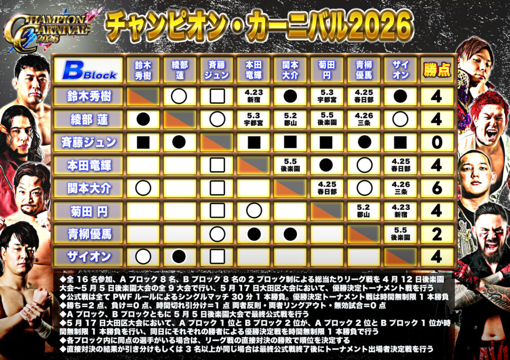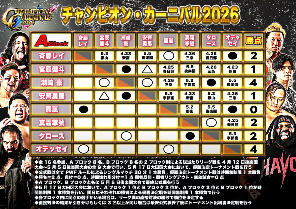 【星取表】「チャンピオン・カーニバル2026」4月21日時点