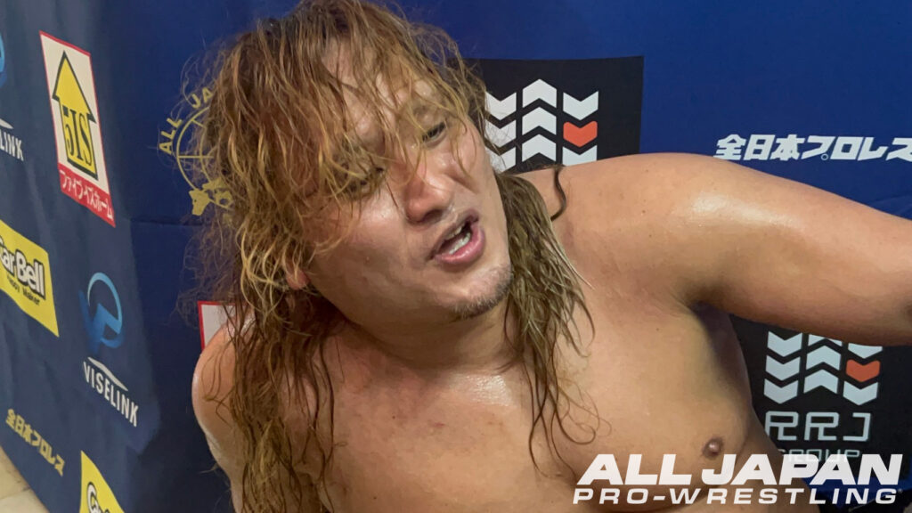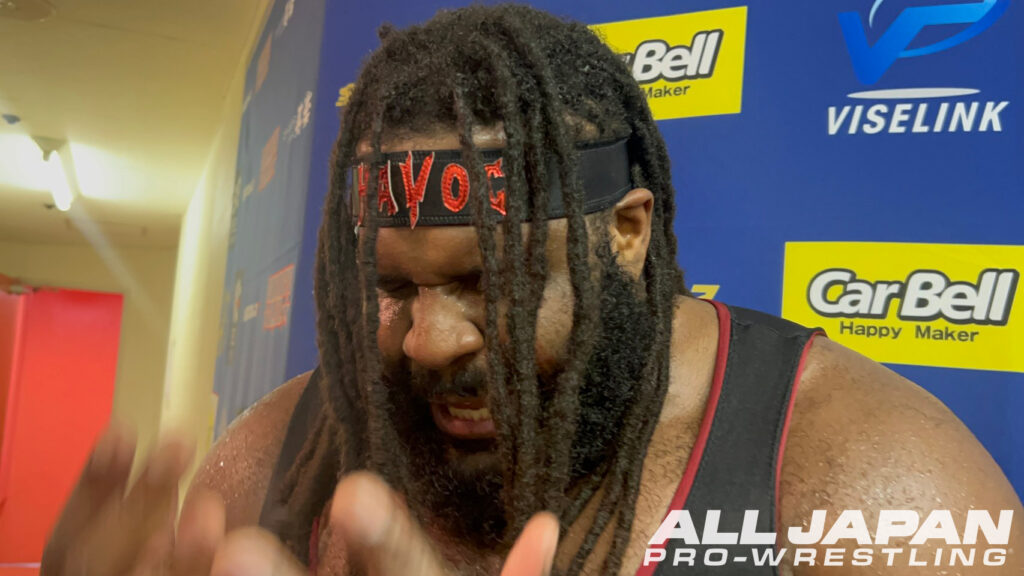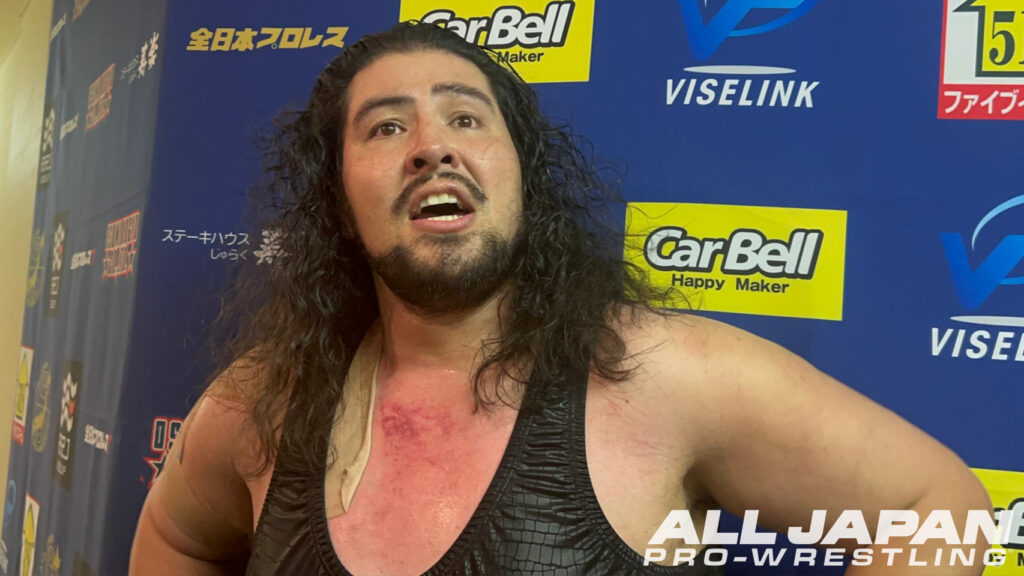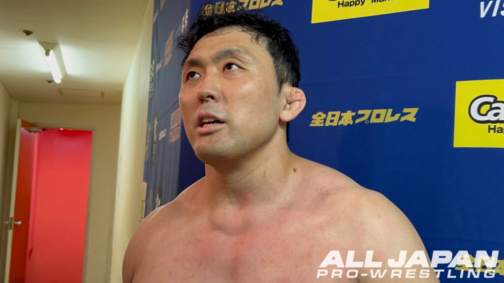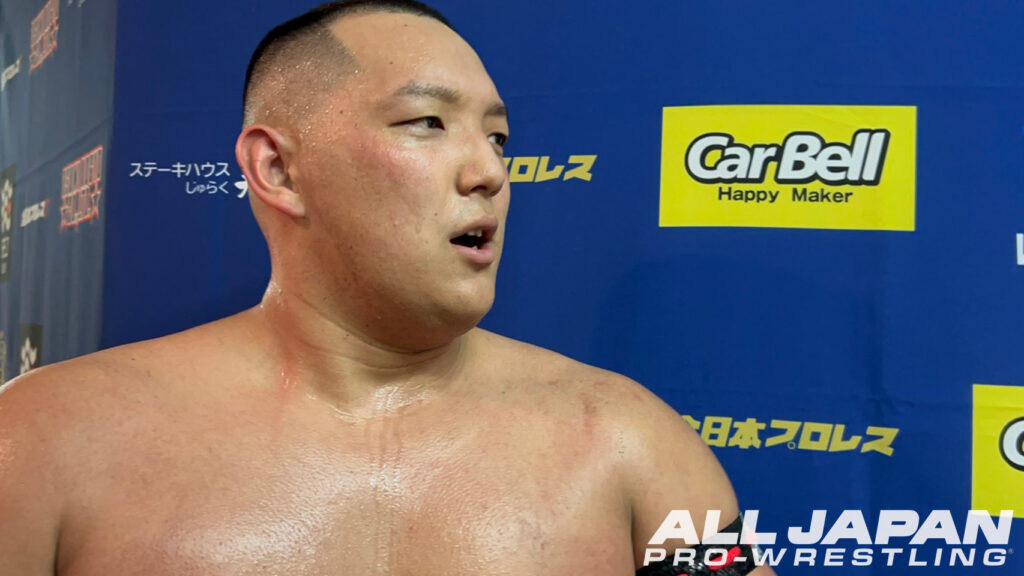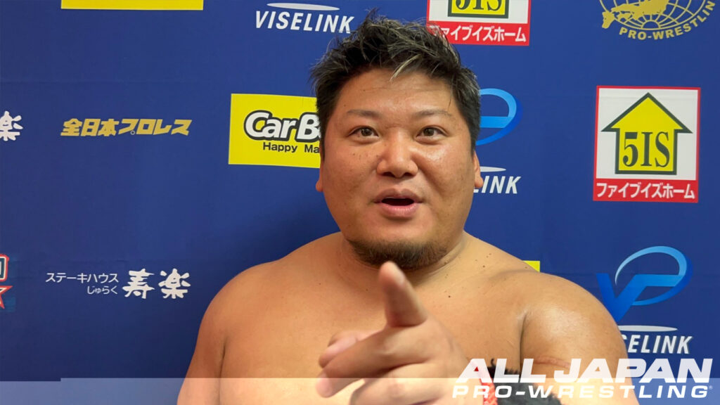 羆嵐「なんか聞こえたな。なんか聞こえたけど、それはさておき、明後日だ。明後日、春日部大会、全日本プロレス、春日部大会、メインイベント知ってるか? 宮原健斗対羆嵐だよ。俺の地元の春日部で、宮原健斗に100倍返しできる、こんなチャンスが巡ってきたよ。俺はチャンピオン・カーニバル、まだ1勝もしてないよ。1勝分じゃねえぞ、4勝分の価値を、その勝利をもぎ取って、宮原健斗、オマエに100倍返ししてやる。ここから俺は巻き返すぞ。チャンピオン・カーニバル、俺が嵐を巻き起こしてやる。羆嵐から目を離すな。ハァァー!」
