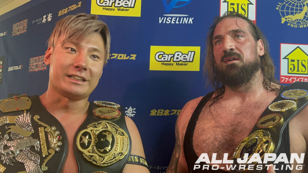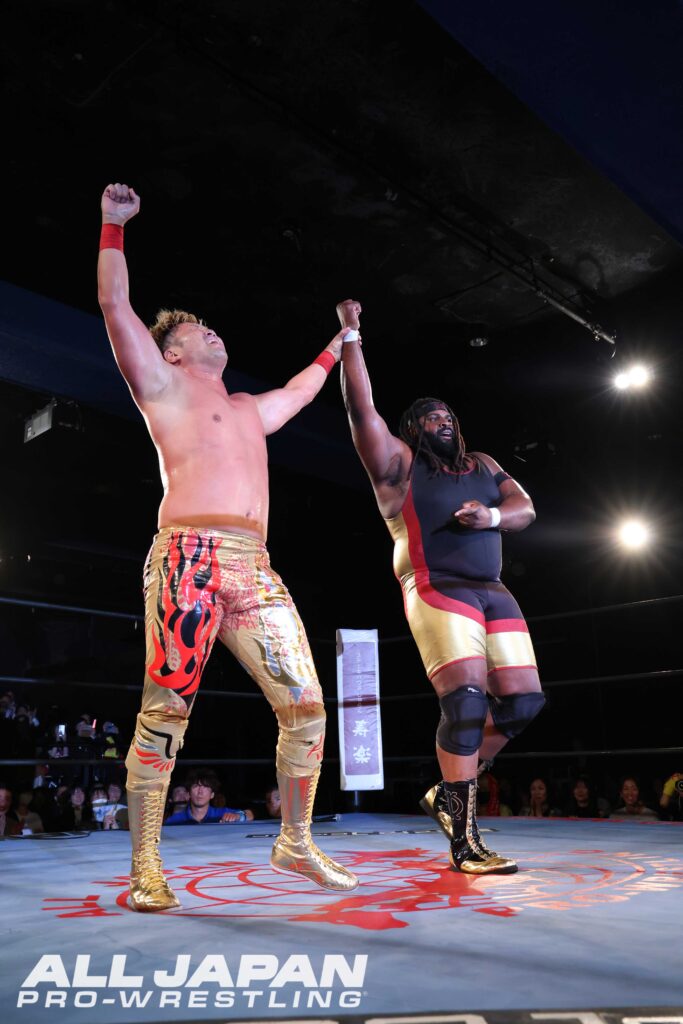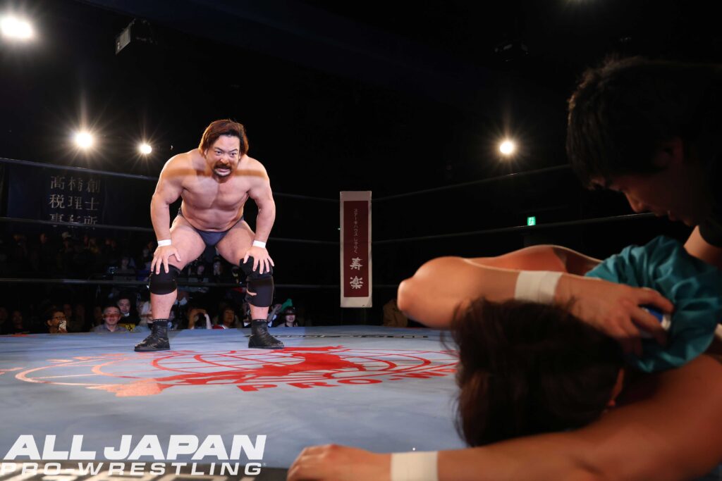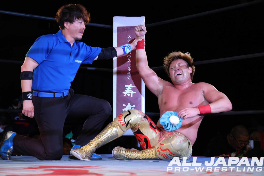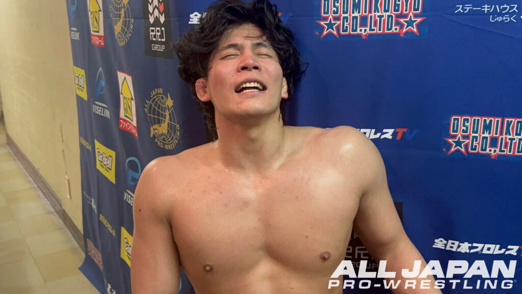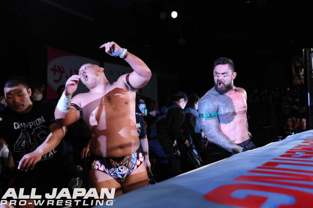 羆嵐「なんか聞こえたな。なんか聞こえたけど、それはさておき、明後日だ。明後日、春日部大会、全日本プロレス、春日部大会、メインイベント知ってるか? 宮原健斗対羆嵐だよ。俺の地元の春日部で、宮原健斗に100倍返しできる、こんなチャンスが巡ってきたよ。俺はチャンピオン・カーニバル、まだ1勝もしてないよ。1勝分じゃねえぞ、4勝分の価値を、その勝利をもぎ取って、宮原健斗、オマエに100倍返ししてやる。ここから俺は巻き返すぞ。チャンピオン・カーニバル、俺が嵐を巻き起こしてやる。羆嵐から目を離すな。ハァァー!」