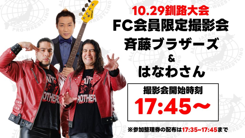 ☆釧路大会では斉藤ジュン選手&斉藤レイ選手&はなわさんのファンクラブ会員限定撮影会開催が決定致しました。