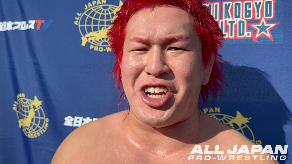 安齊「今日沼津、小藤将太、久しぶりに自分よりキャリアが下の選手とシングルマッチしました。めちゃくちゃ気持ちが強くって、前から思ってたけどめちゃくちゃ全日本に馴染んでるんじゃないですか?俺はもう、ほぼ全日本の後輩だと思ってるんで、またシングルマッチやりましょう。そして、昨日負けちゃって黒星スタートだけど、世界最強タッグ決定リーグ戦、俺と青柳さん一個も諦めてないからここから巻き返して必ず優勝します」