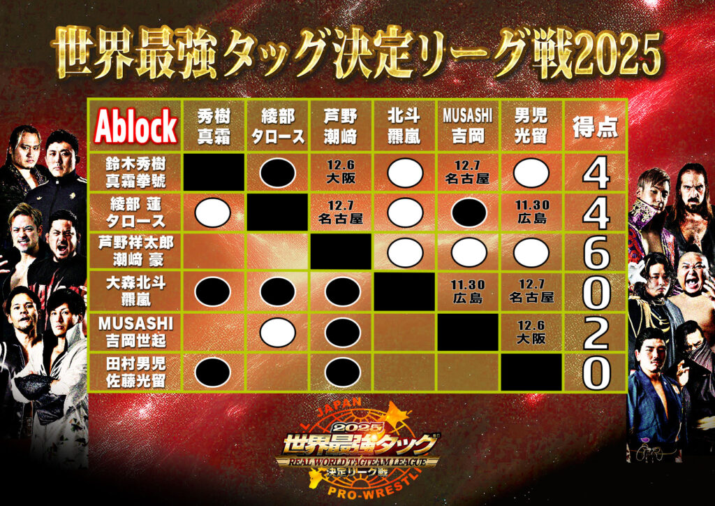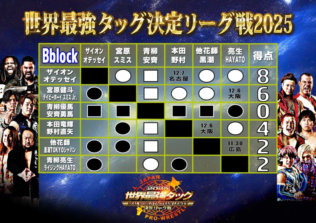 【星取表】「世界最強タッグ決定リーグ戦2025」11.29福岡大会終了時点