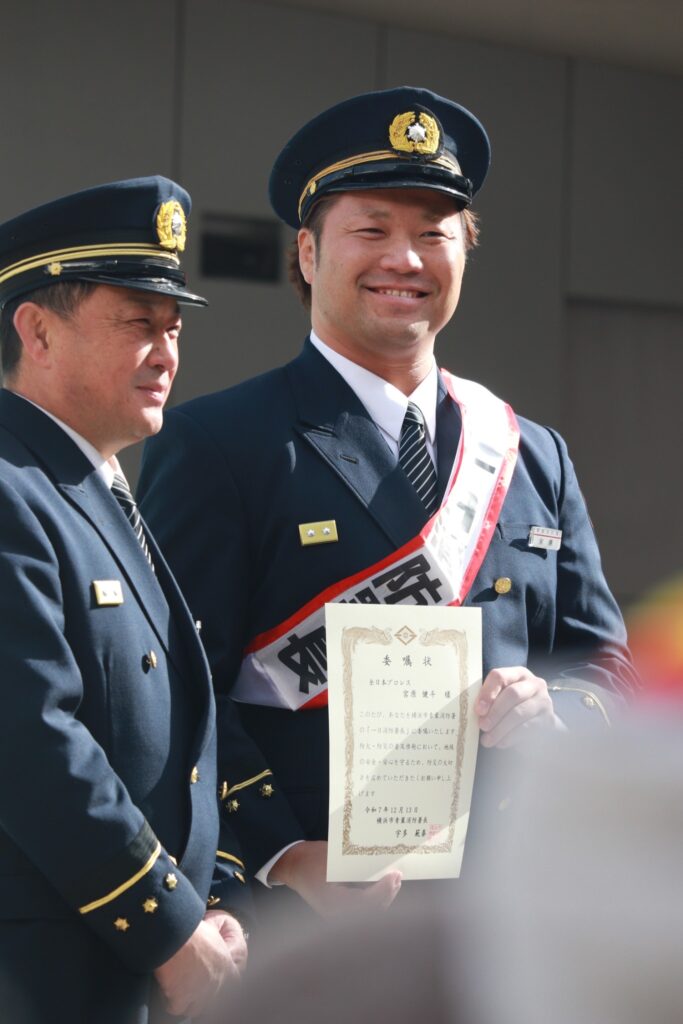 【活動報告】宮原健斗選手が青葉消防署1日消防署長に就任 本田竜輝選手、井上凌選手とたまプラーザ駅で啓発活動に参加
