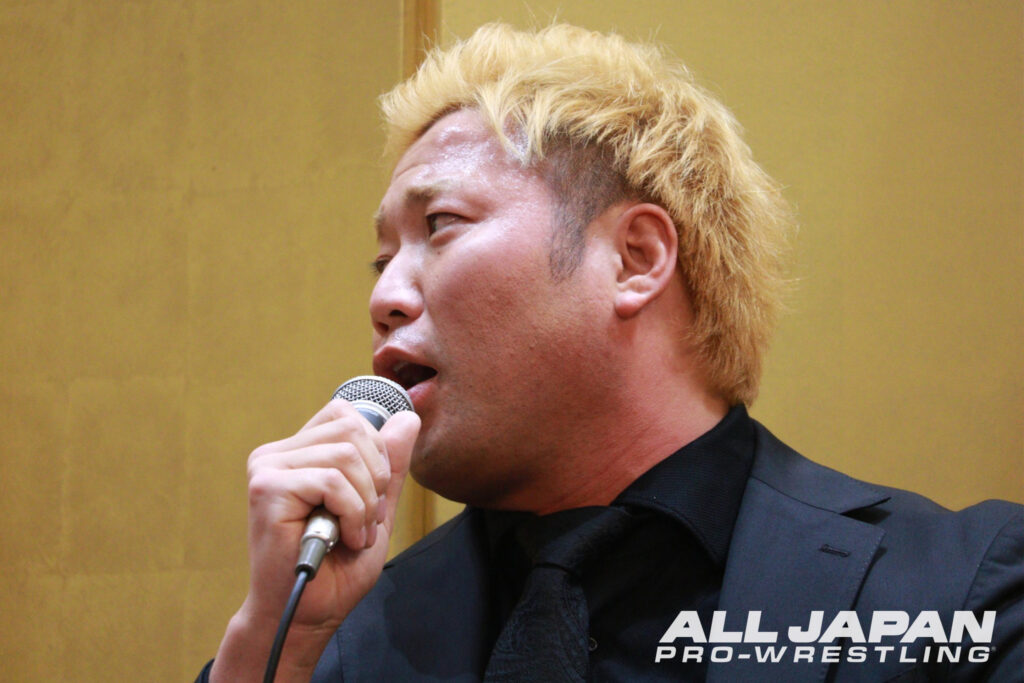 安齊「全日本プロレスの安齊勇馬です。大晦日でメインイベントそして、タイトルマッチができることを今からとてもワクワクしています。2025年を振り返ると、1月に三冠に挑戦するも負け。6月にはアジアタッグを落とし、ELPIDAが解散。冬こそはと懸けた世界最強タッグ決定リーグ戦では思わぬアクシデントにより、その冬が終わりました。今年はこのまま終わりかなと思ったところ、自分の力で手繰り寄せた大晦日での三冠戦。やっぱり俺は、そういう星の元にいるんだなと思っています。以前の後楽園ホールで言った通り、俺は宮原健斗がそこらへんのレスラーとは違うってことはもちろんわかっています。宮原健斗が出す声は、全日本プロレスはもちろん、プロレス界に響くと思っています。ただ、俺だったらプロレス界を超えたさらにその先に、全日本プロレスを届けることができると思っています。全日本プロレスを知らないプロレスファン。プロレスすら知らない人達、そういった人達に安齊勇馬、そして全日本プロレスを届けるのは、俺しかいないと思っています。なので、この大晦日で必ず俺が三冠を巻きます。やられたことはやり返すと、ちゃんと学んだので。大晦日、仰向けに寝る宮原健斗の横で、俺は三冠ベルトを掲げます。ぜひ皆さん、時代の変わる一歩目をその目で確かめに来てください。以上です」