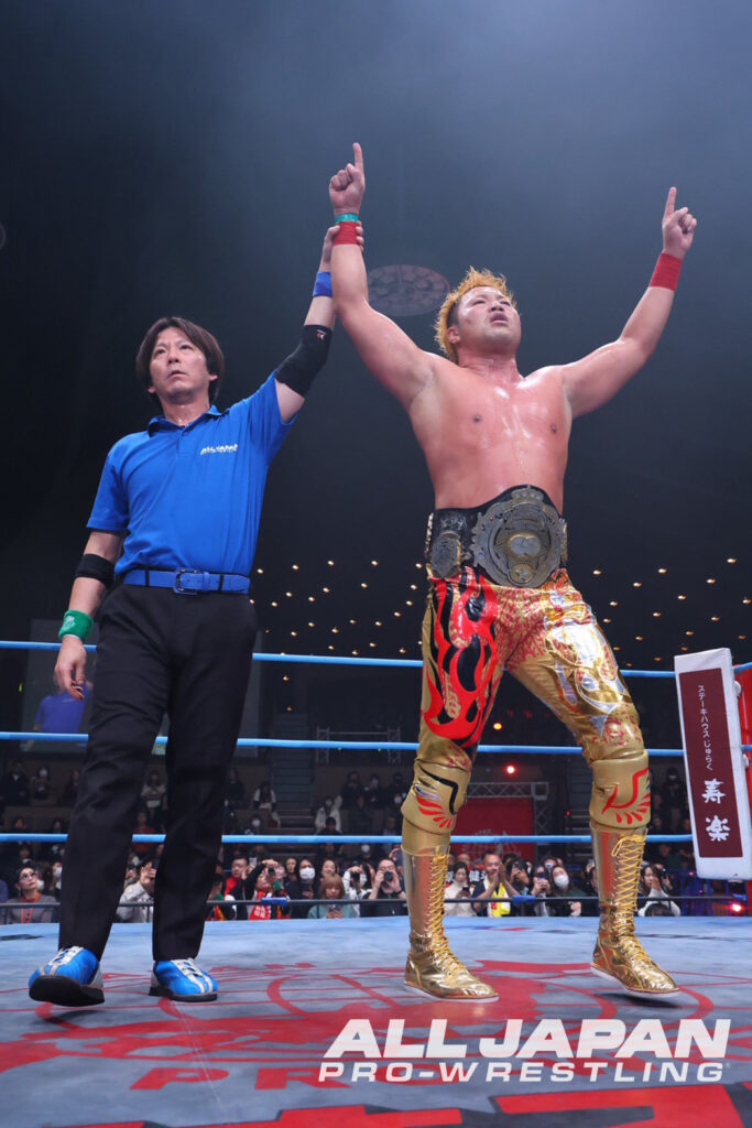 試合後、マイクを握って安齊を「安齊勇馬、今日限りを持って全日本プロレスのホープはもう返上しろよ! 君はスターだ」と称えた宮原。次の防衛戦の舞台を1.25幕張メッセ大会に指定すると、無差別級でジュニアからも挑戦者を求めることも宣言。「2026年1月2日、東京・後楽園ホールで挑戦宣言をしろ。俺はそいつとやる」と早速1.2後楽園大会で挑戦者に名乗りを上げる人間を求め、最後は「ゼンニチ大晦日、そして全日本プロレス、最高…!」と締めくくった。