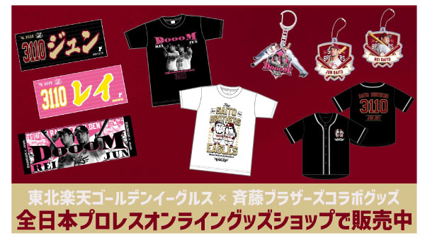 【斉藤ブラザーズ✖東北楽天ゴールデンイーグルス】コラボレーショングッズが全日本プロレスオンライングッズショップで販売中!