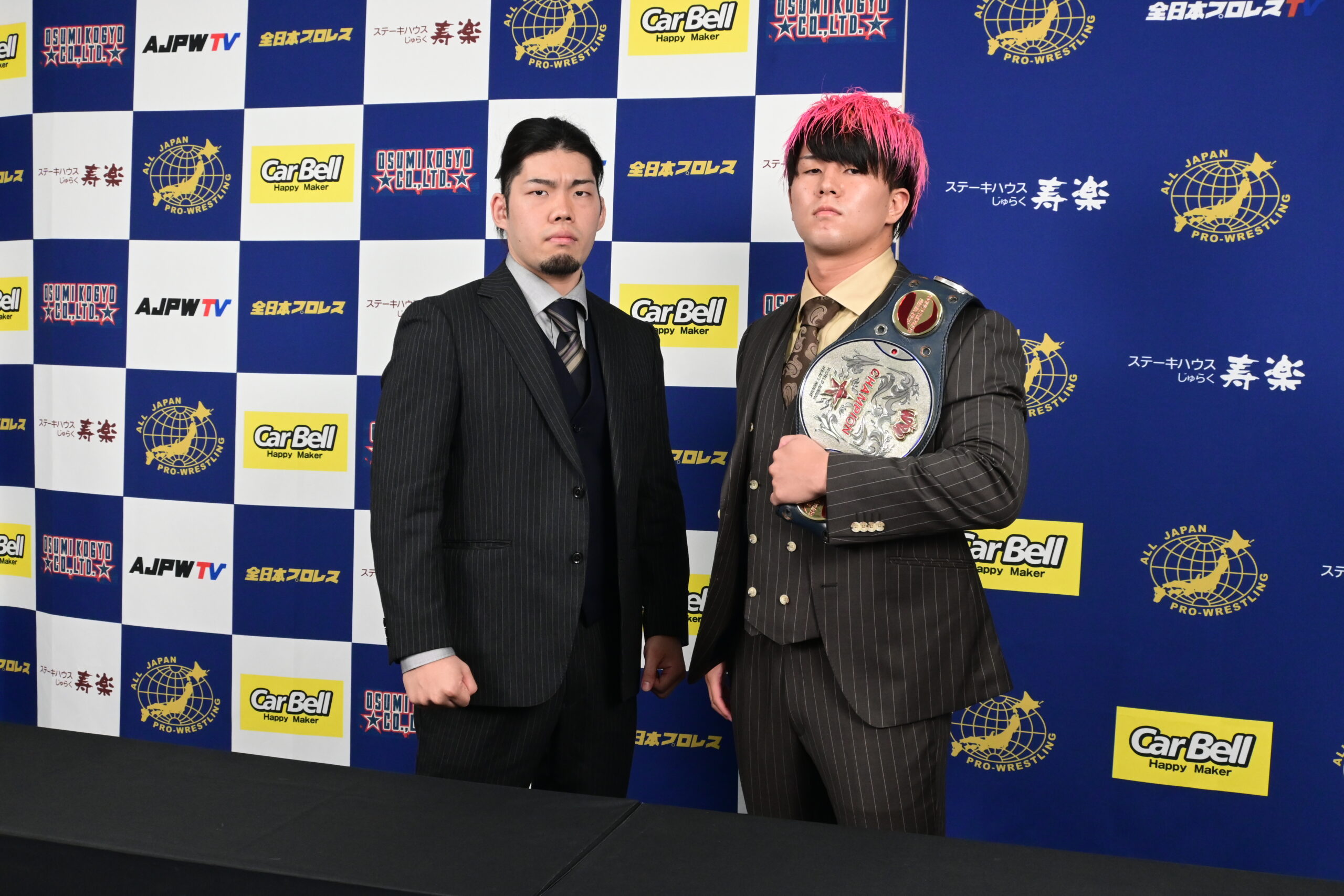 【10.11行田】世界ジュニアヘビー級選手権試合記者会見「全日本プロレスってのはこういうもんだっていうのをリング上でじっくり教えられる場になるんじゃないか(亮生)」「ここでチャンスをものに(井上)」